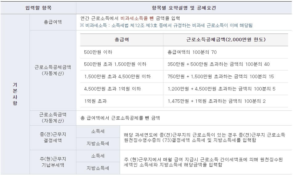 ✅ 신용카드 소득공제액을 제외한 다른 항목들은 지난해 신고한 금액을 토대로 자동으로 입력됩니다.