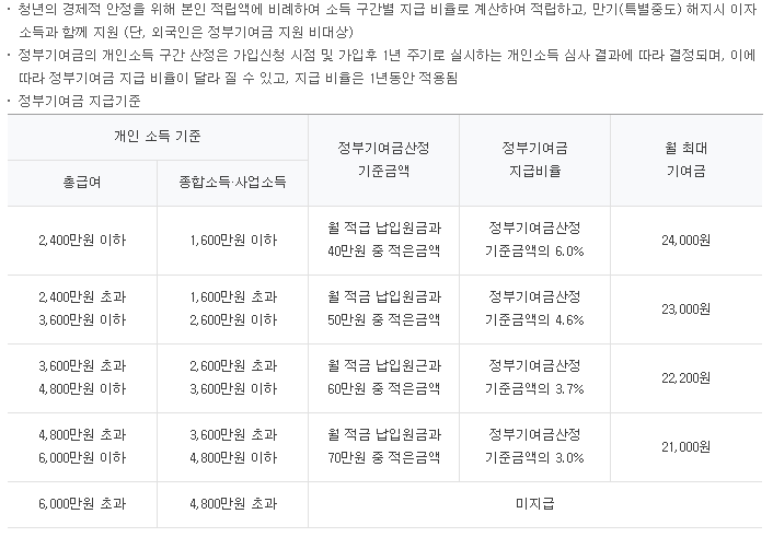 ②정부기여금은 기본금리로 계산한 이자를 정부기여금에 더하여 만기(특별 중도) 해지 시 지급함