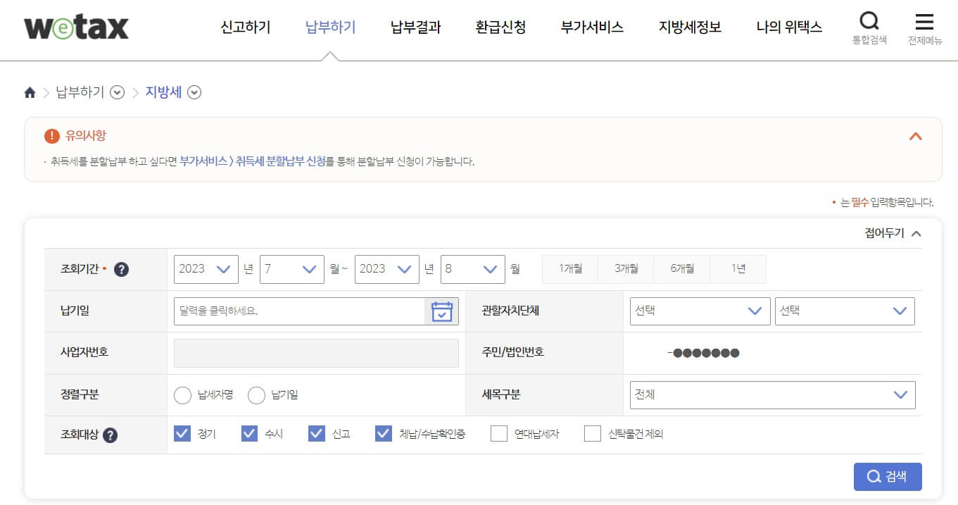1. 위택스 홈페이지 접속 https://www.wetax.go.kr/